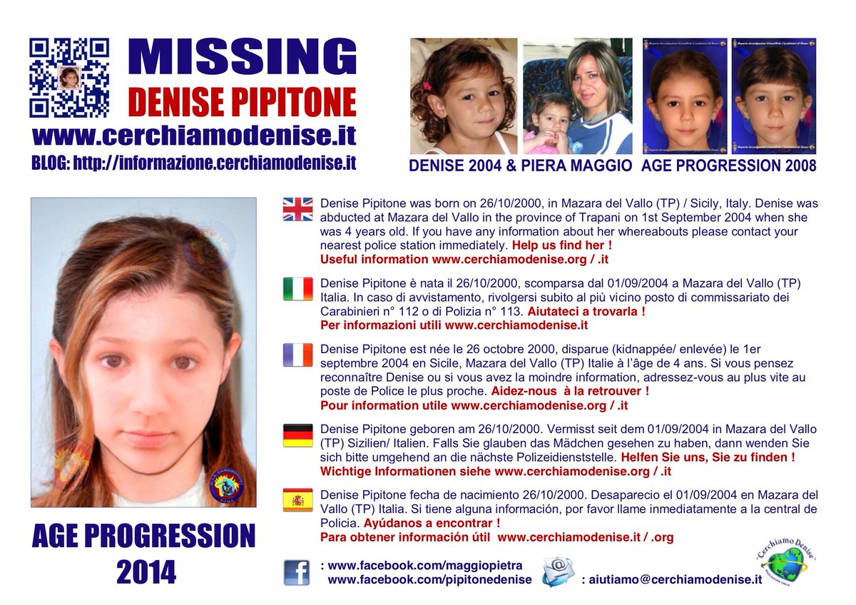 𝙼𝚊𝚛𝚝𝚒 On Twitter Missing Denise Pipitone We Are Looking For Denisepipitone Who Disappeared At The Age Of 4 On 1 09 2004 In Mazara Del Vallo Sicily Italy Missing Desaparecida